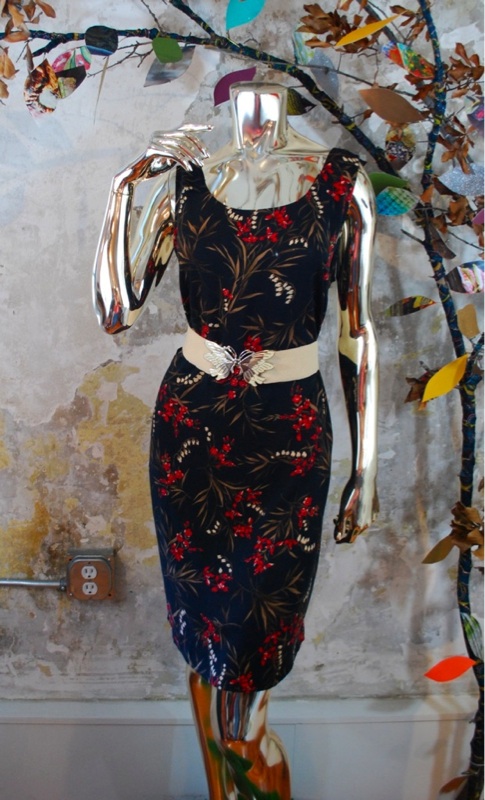 DRESS 5 Style.... Day Dress, Hipster, Indie, Boho Cut.... Straight Material.... Cotton Label.... Sag Harbor Color.... Black, Red Brown, Cream Pattern.... Floral Bodice.... Loose fit Neckline.... Scoop Sleeves.... Tank Waist.... Open Skirt.... Straight, Small 1" slit in back Pant.... N/A Length.... Mini Buttons.... None Zips.... In back Lined.... No Condition.... EXCELLENT~ Previously worn, with only very slight wash wear; no flaws Size.... No size tag (see measurements) Misc....