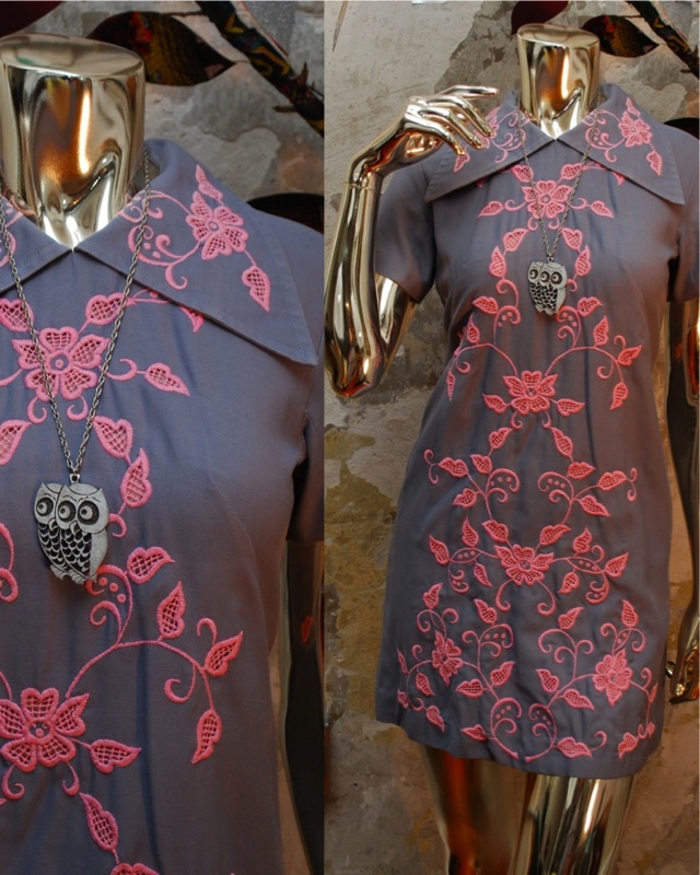 Pattern.... Pink floral embroidery cascading down the front & on the back