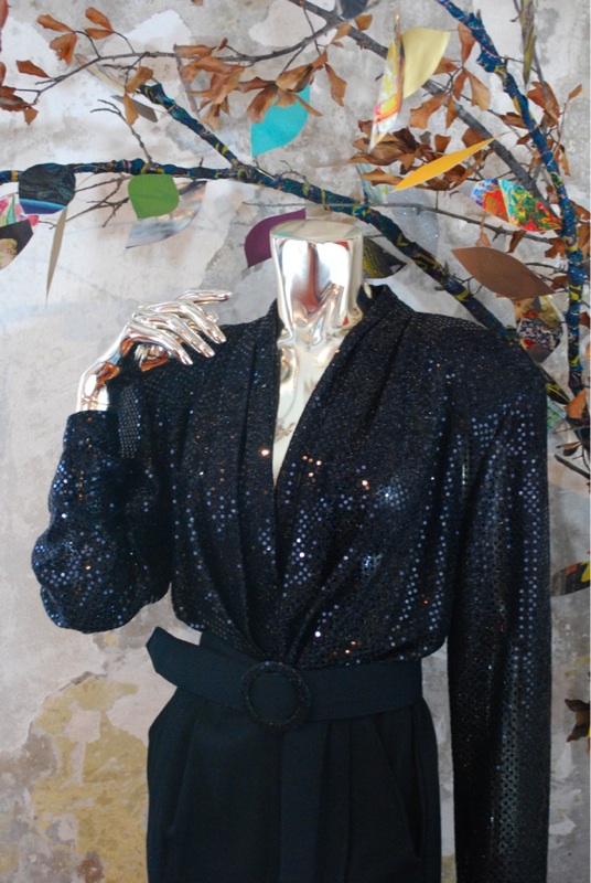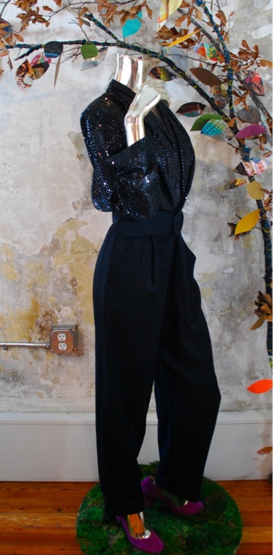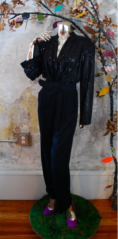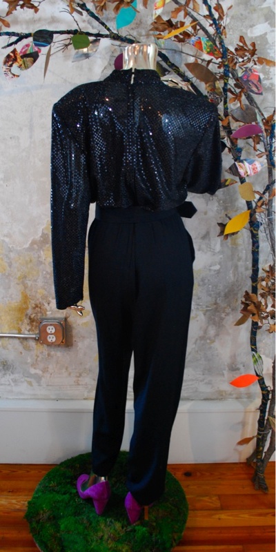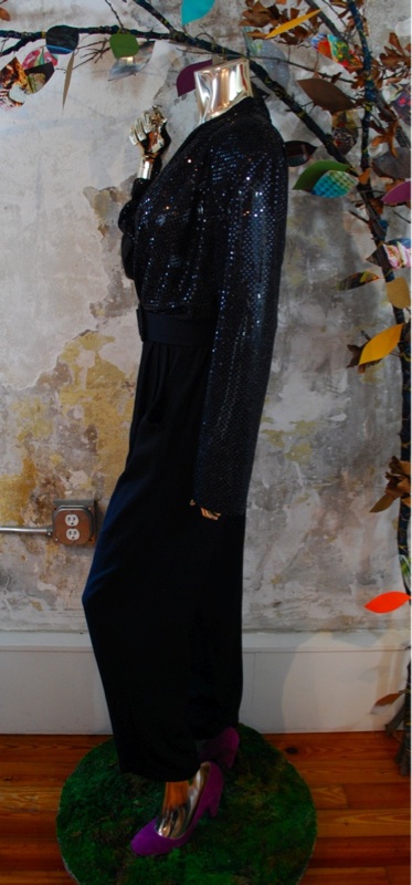 VTG 80s JUMPSUIT Black Cocktail Sequin Urban M L