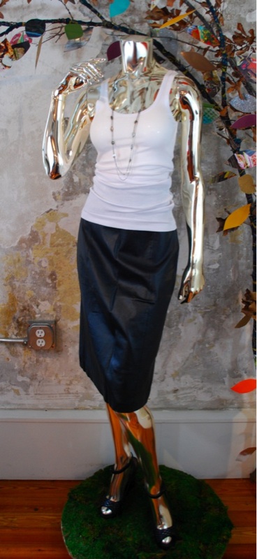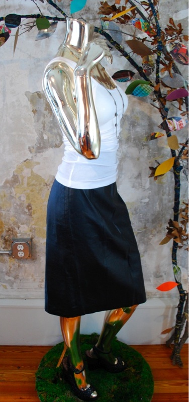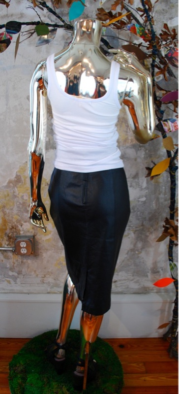 Item Descriptionn Style.... Punk, Indie, Hipster, EMO Cut.... Long, Pencil Material.... Leather Label.... Inetro Style Color.... Black Pattern.... No Bodice.... N/A Neckline.... N/A Sleeves.... N/A Waist.... Form fitting Skirt.... Straight, Panels front and back Pant.... N/A Length.... Hits below knee Buttons.... No Zips.... Up the back Lined.... Fully Condition.... NWT~ New with tags: Never washed or worn; no flaws Size.... 4 (see measurements) Misc....