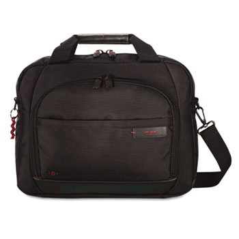 Lightweight and durable top-loading case is suitable for day-to-day uses and is great for business trips. Patented shock absorber further protects your laptop when traveling. Padded laptop sleeve holds laptops with screens up to 15.4" for added protection. Has front-pocket zippered organizer and convenient top carrying handle. For Device Type: Notebook; Material(s): Ballistic Nylon; Carrying Method: Carrying Handle; Shoulder Strap; Color(s): Black.