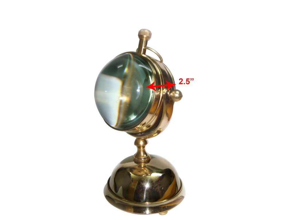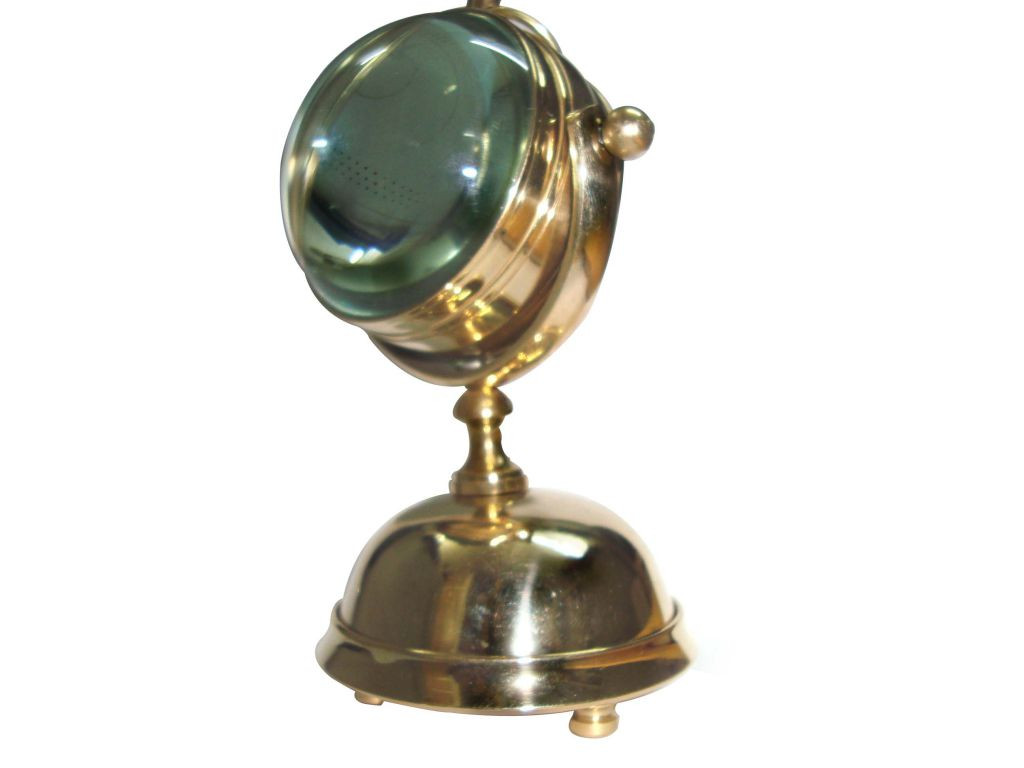 antique spherical desk clock. It has a hemispherical glass lenses on both front