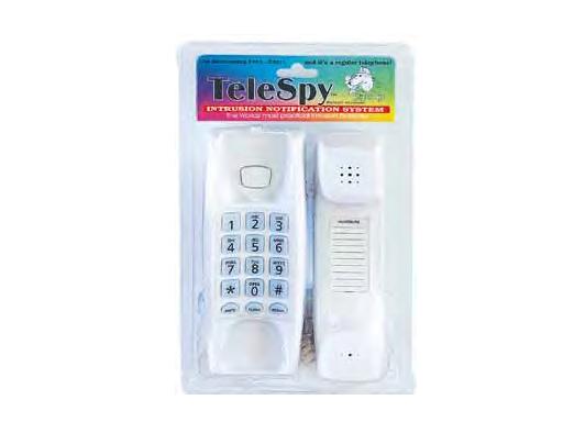 TELESPY™ INTRUDER ALERT is a clever and reliable combination of a telephone, a motion sensor, and a microphone. The TeleSpy is an ordinary telephone that doubles as a monitoring system. Simply enter any phone number you want the unit to call and turn the motion sensor switch to ”on”. Should motion be detected the phone will dial the number entered and upon answering you will be able to listen in via the amplified microphone on the unit. The TeleSpy allows you to decide from a safe location if it is a friend or foe before you call the police. The listening period is about 30 seconds, then the TeleSpy disconnects and instantly re-arms to detect again and again. TeleSpy operates from any phone line, requires no installation, and is completely portable. No monitoring fees, no false alarms.