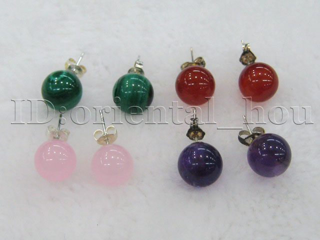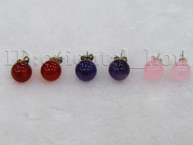 10mm Amethyst&Rose Quartz&Carnelian&phoenix SS Earrings