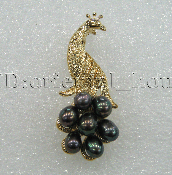 Wonderful!7x8mm Black FW Pearl peacock BROOCH/PIN