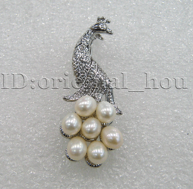Wonderful!7x8mm peacock green FW Pearl peacock Brooch