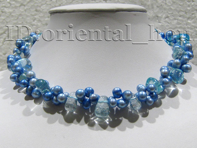 Wonderful!6x7mm Blue FW pearl&POP crystal Necklace