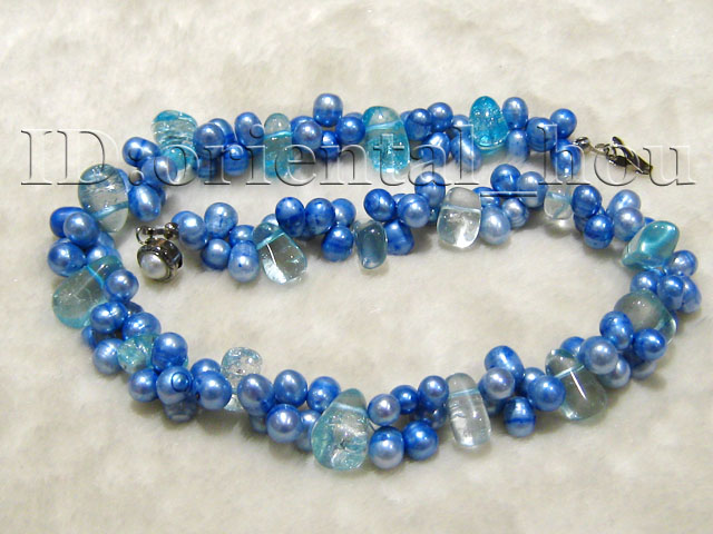 Wonderful necklace made of 6x7mm blue FW pearl and dropwater POP crystal.Very beautiful.Don`t miss it. |