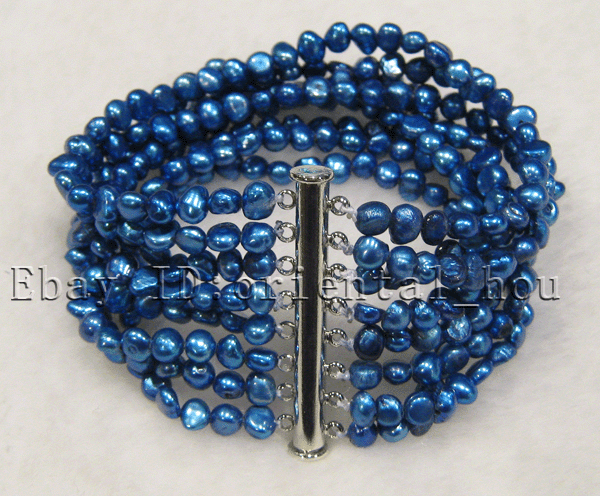 Wonderful!7.5" 8Strands Dark Blue FW pearl Bracelet