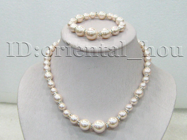 Wholesale!8-14mm White Mother of pearl necklace bracelet set