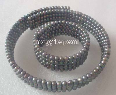 Necklace and matching bracelet made of BLACK FW pearl about 5mm in size.Very beautiful!