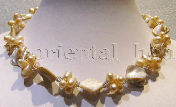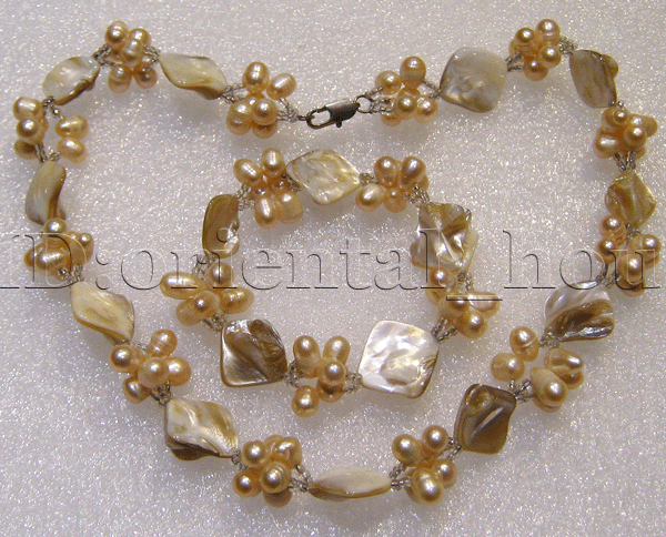 Fancy! Pink FW pearl,Shell pearl Necklace&Bracelet set