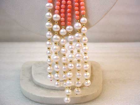 45" 3-STR PINK CORAL FRESHWATER PEARL SWEATER NECKLACE