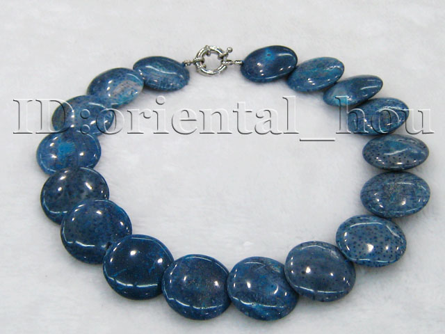 Wonderful necklace made of huge round flat blue coral about 25mm.Good quality! |