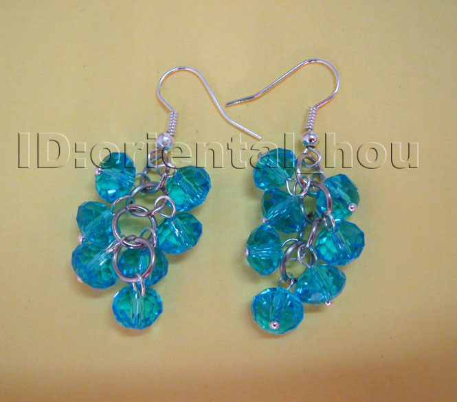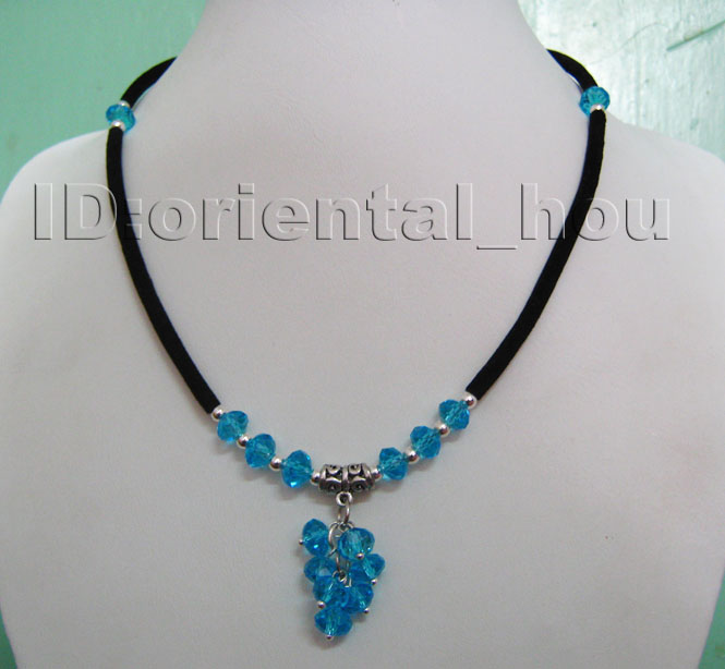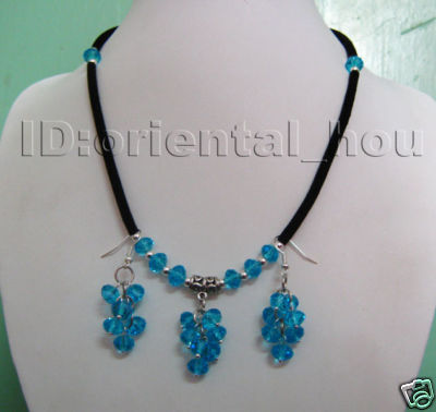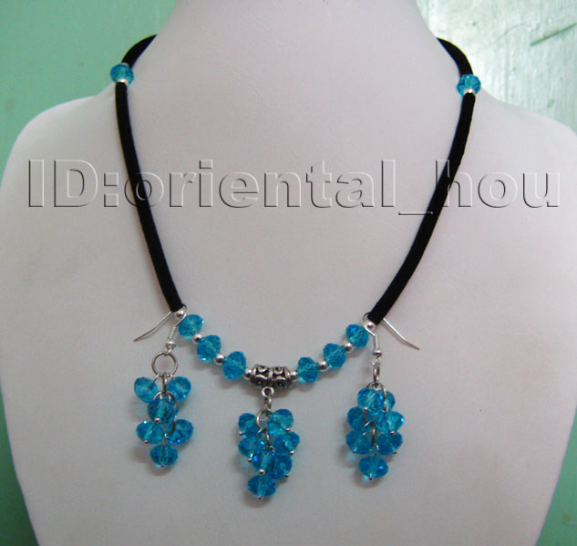 Charming necklace and earrings made of blue crystal with small facet Good quality!Very shiny when wearing! |