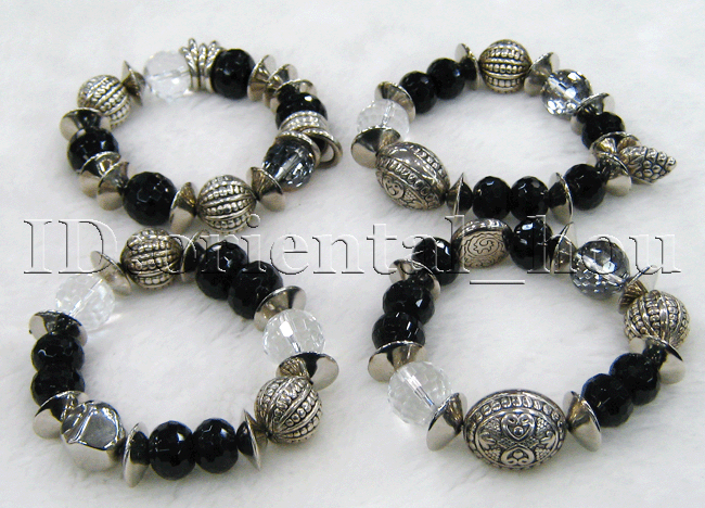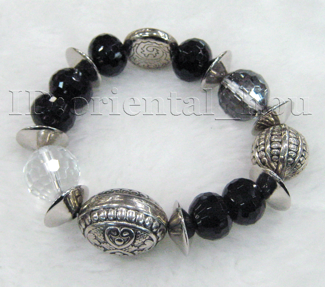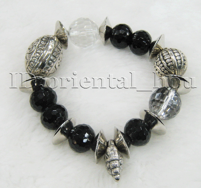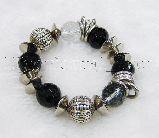 Charming bracelet made of 16mm,14mm,different size black and white crystal with small facets and some silver fittings.Good quality! |