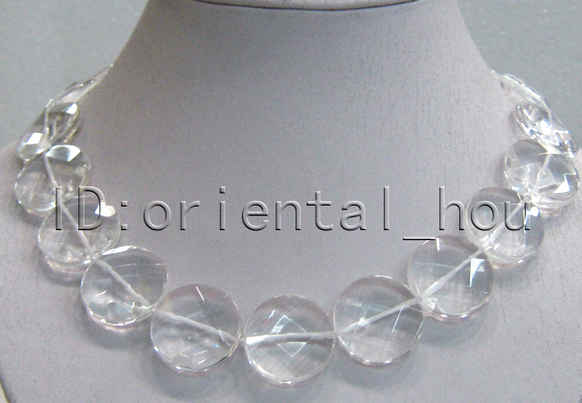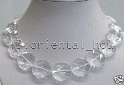 Wonderful necklace made of white round flat crystal about 23mm in diameter with small facet.Good quality,High luster! |