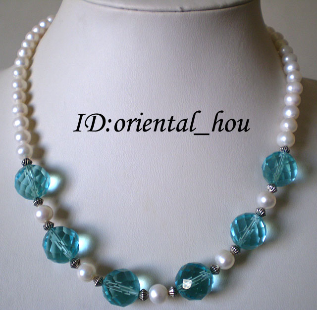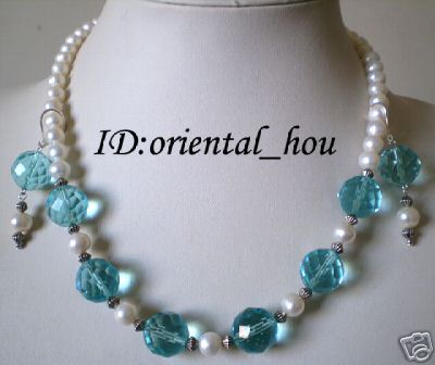 This auction is for one set including neckalce and the matching earrings.They are made of white FW pearls measuring 7-8mm and 14mm sapphire with samll facet and silver beads.The necklace is about 18.5" with a silver clasp and the matching earrings is about 2.25" in length. Length:18.5"/2.25" Material:FW&sapphire Packing:lovely pouch Unit:one set | |