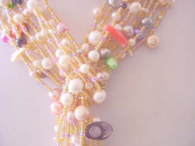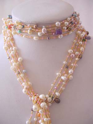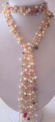 This auction is for a set of necklace measuring 45" in length for one strand, made with 5 strands small peach glass beads, different freshwater pearl and differnet stone/crystal. Length:45" for one strand Material:glass beads, pearl/crystal Unit:one necklace |