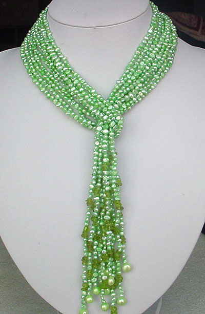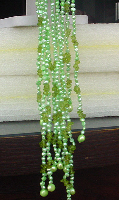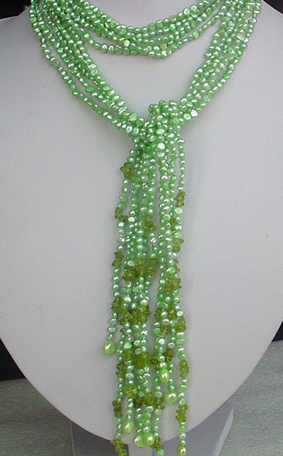 5-str 45" green FW pearl 4mm&olive green stone necklace