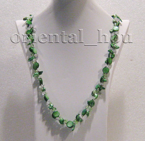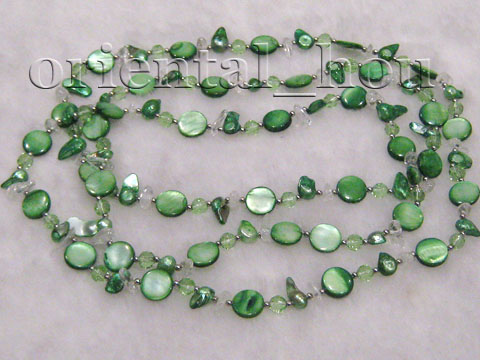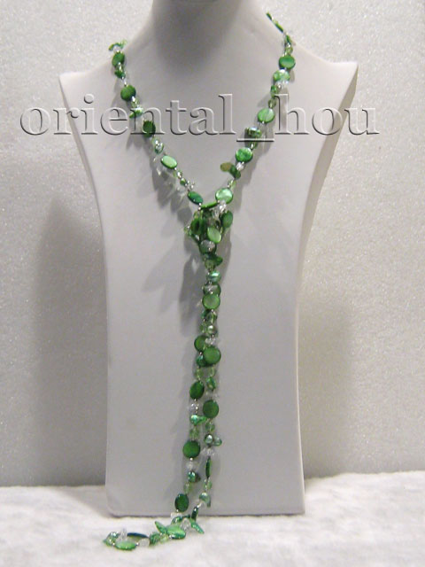 Long!47"Green Shell pearl&White&Green Crystal Necklace