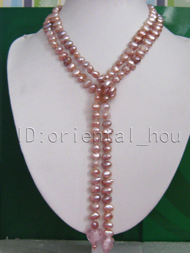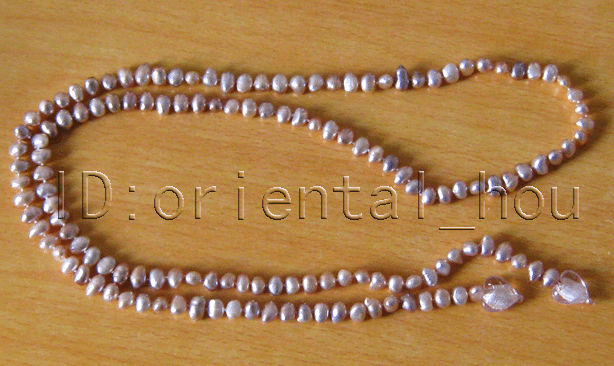 45"7-8mm Natural Purple baroque FW Pearl&Heart Necklace