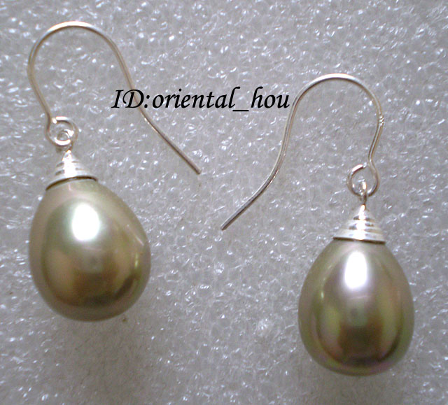 10x12mm olive green Seashell pearl&Sterling Earrings