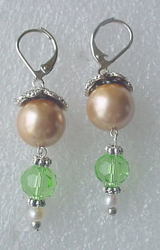 This dangle earring is made of champagne mother of pearl 12mm in size, green crystal as well as some fittings.The length is approx 1.5". material:mother of pearl, crystal Length:1.5" Unit:one | |