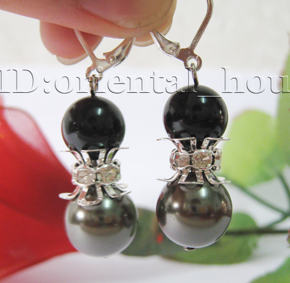 Beautiful!Black,Dark Green Mother of pearl Dangling Earrings 10MM 12MM