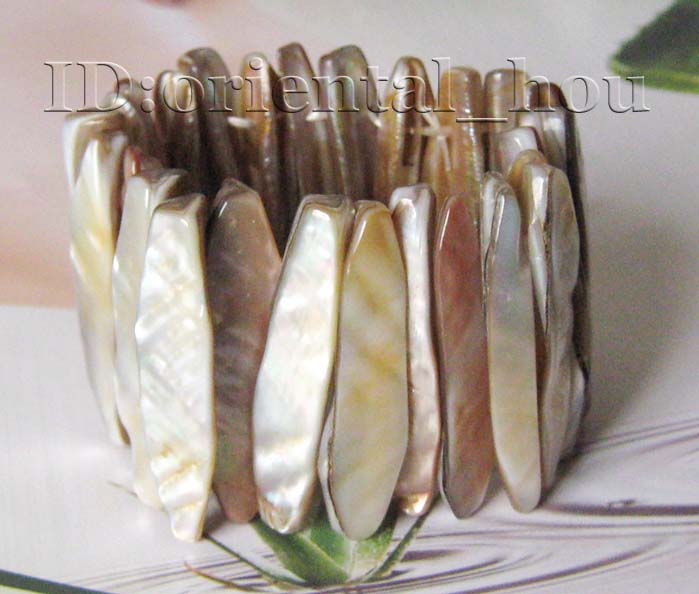100% GENUINE FINEST NATURAL MOTHER OF PEARLS SHELL bracelet . Look at the luster, Very Shinny! Very Pretty! about 8x44mm |