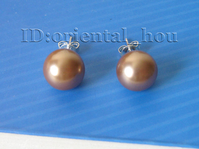 Genuine!10mm champagne Mother of pearl S925 Earrinngs