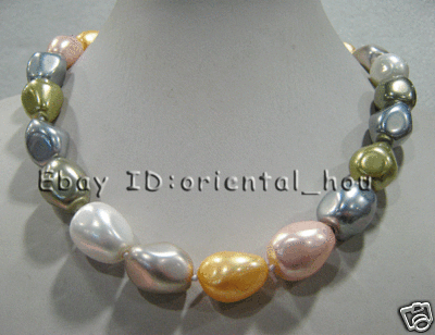 Beautiful!16x20mm Baroque Multi-color Sea Shell Pearl Necklace