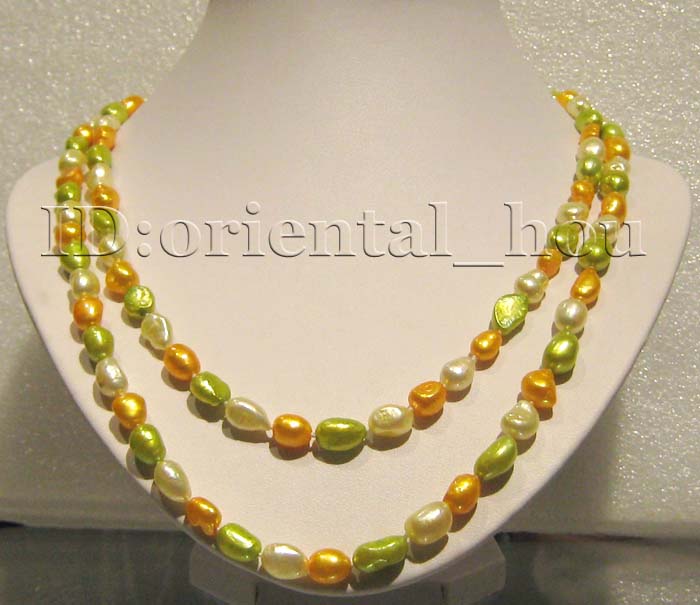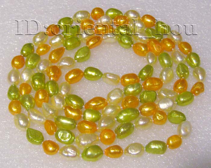 47" 8X12MM light yellow&orange&green FW Pearl NecklacePrice:  $10.00