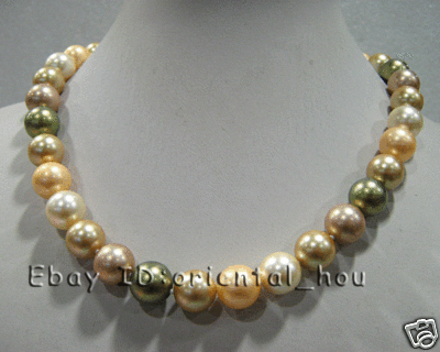 Necklace ,Multi-color South Sea Shell pearls,12mm in size.We assure 100% South sea shell pearls.Round in shape, high luster.Each pearl is knotted for beauty and safety. |