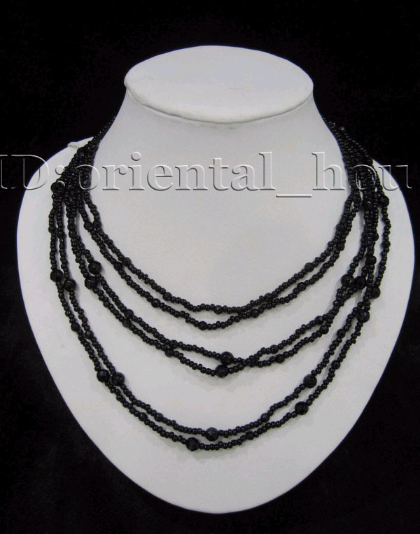 Fancy!6strands 4mm 6mm small facet Black Onyx Necklace