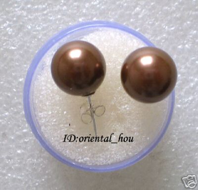 10MM dark brown MOP Sterling Silver Stud Earrings