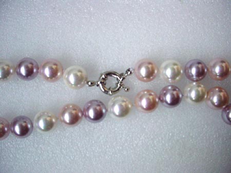 This is a piece of white pink purple sea shell pearl necklace.The pearl has very beautiful color, good luster, very round shape. It is very gorgeous and noblest.Its workmanship is very meticulous .Taking it can show your noble makings , and very beautiful. You can regard it as the present to give to your friend or relative too. Dot't miss it. Length:17.5" material:MOP unit:one piece | |