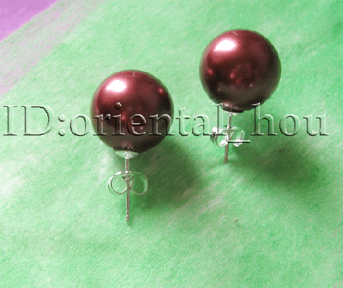 AAAGenuine!14mm Wine Seashell pearl Earrings--S925 Stud