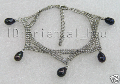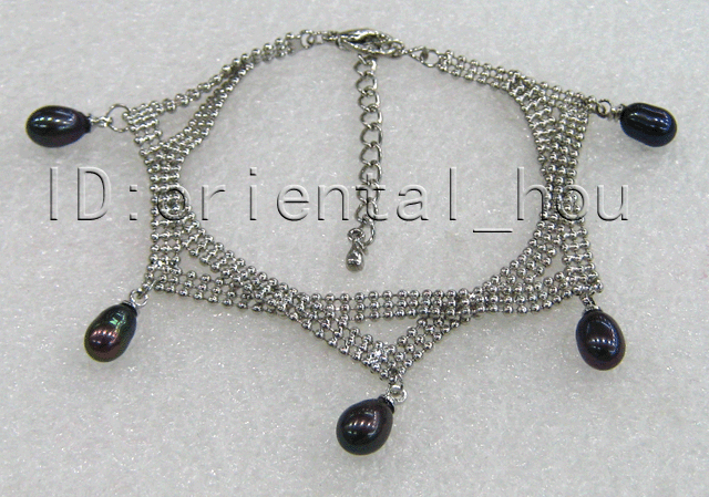 Wonderful!AAA 7x8mm Black Rice FW Pearl Chain Bracelet