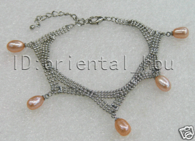 Wonderful!AAA 7x8mm pink Rice FW Pearl Chain Bracelet