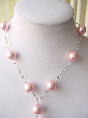 The necklace is made of pink mother of pearl 12mm in diameter and pink crystal.The length is 17" excluding the pendant 4" long. Length:17"+4" Material: mother of pearl,crystal Diameter:12mm Unit:one necklace | |