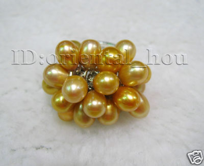 Charming!Gold Rice Freshwater pearl Adjustable Ring