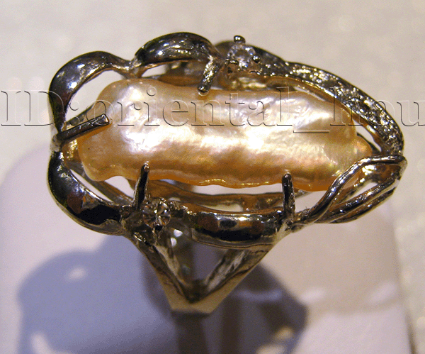 Beautiful ring made pink biwa pearl,with high luster! |