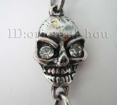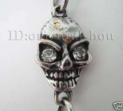 Cute 8" silver plated Crystal Skull Cuff Bracelet