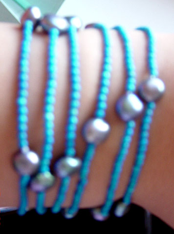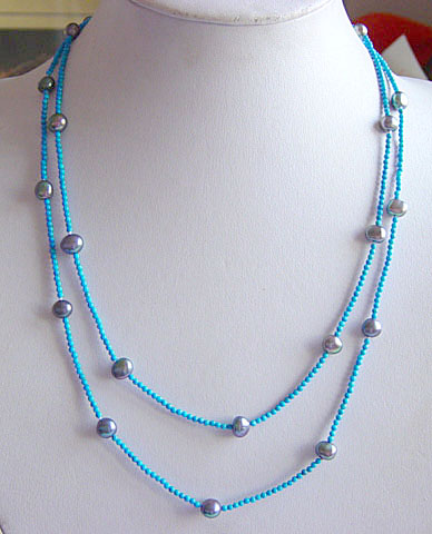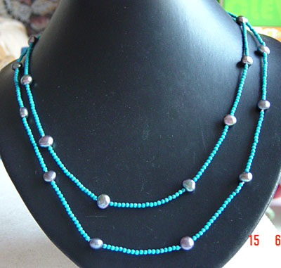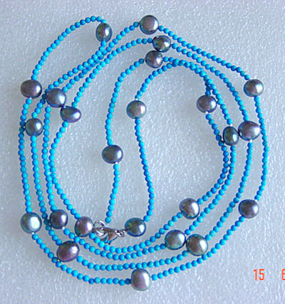NEW!The necklace is made of blue turquoise about 4mm and black FW pearl 7-8mm in size. The length is 44".The clasp is lobster clasp. Material:turquoise&pearl Length:44" Unit:one | |