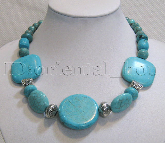Wonderful necklace,turquoise,Round Flat in the center(40mm in diameter),Square(35mm in diameter),Round(10mm),good quality,High luster! |
