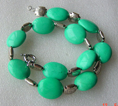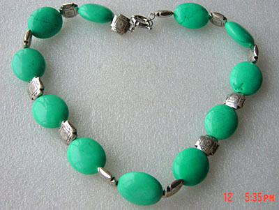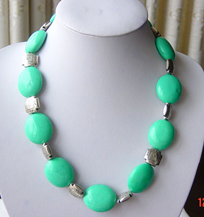 The beautiful necklace is made of blue turquoise oval shape approx. 20x32mm in diameter and "+" shape silver block.The length is 22" with a round metal clasp Material: turquoise Length:22" Unit:one |