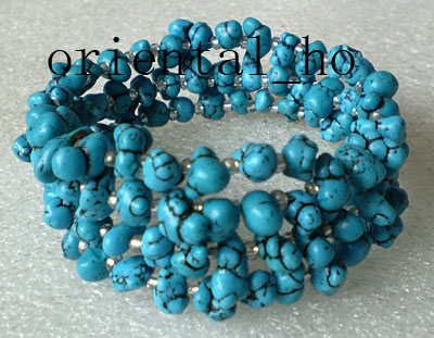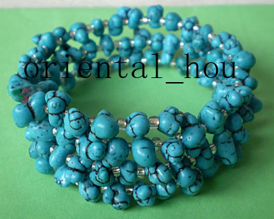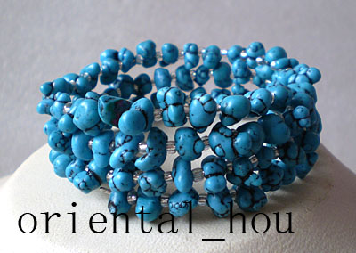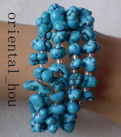 Bracelet is made of natural baroque blue turquoise alternated with white glass beads.It is beautiful and convenient when wearing.Don`t miss it. Material:blue turquoise Unit:one | |