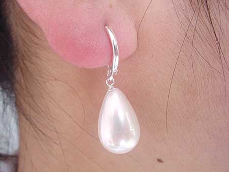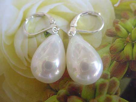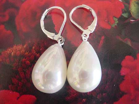 Beautiful dangling earring made with white drop water sea shell pearl measuring approx. 12x16mm in diameter and S925 ear wire. Material:real oyster shell Diameter:12x16mm Ear wire:S925 Unit:one pair