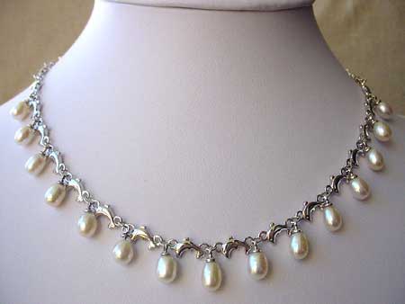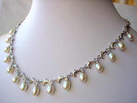 This auction is for a necklace, which is made of white tear freshwater pearl measuring approx. 6-7mm in diameter and 18KGP dolphin chain. The necklace is 16"-18" in length, you can change it until you think it's Ok. Length:16"-18" Material:freshwater pearl Unit:one necklace | |